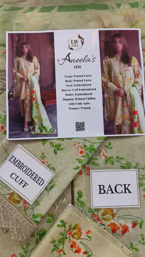 Aneela's luxury lawn Embroidered Unstitched - ANW-879