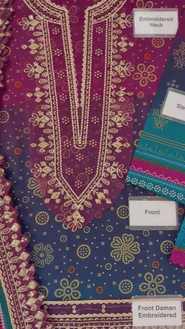Nureh luxury lawn Embroidered with chiffon dupatta Unstitched - NP-700