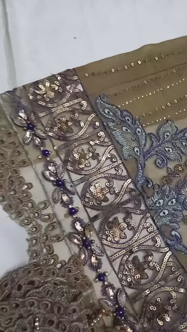 - Luxury chiffon embroidered Shirt with hand Embellishments